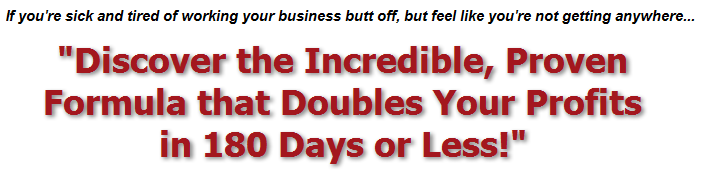 He has genuinely designed a step-by-step system for doubling your business profits in 180 days or less...100% guaranteed! (And now this is your chance to profit big-time from all his hard work!)"